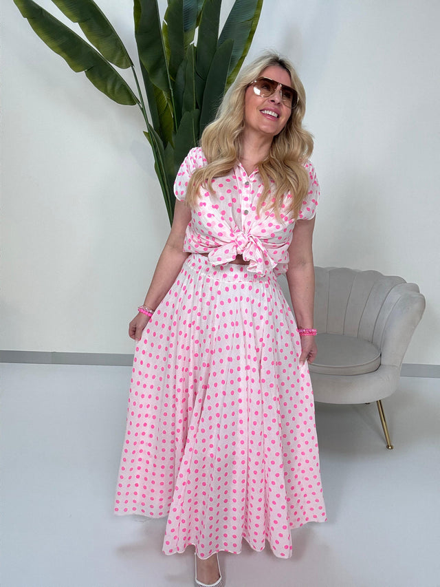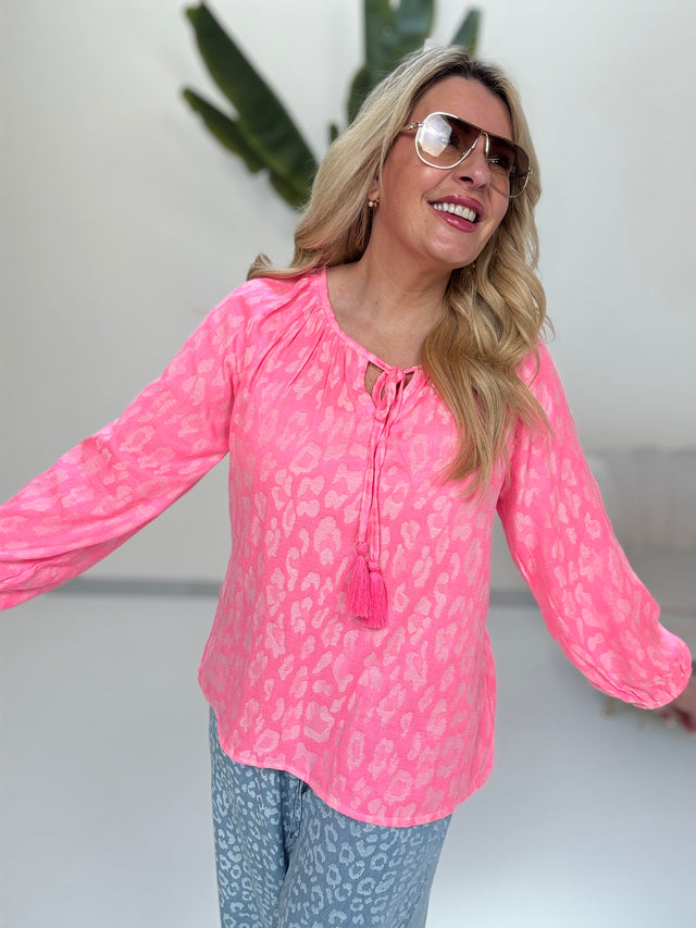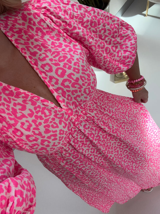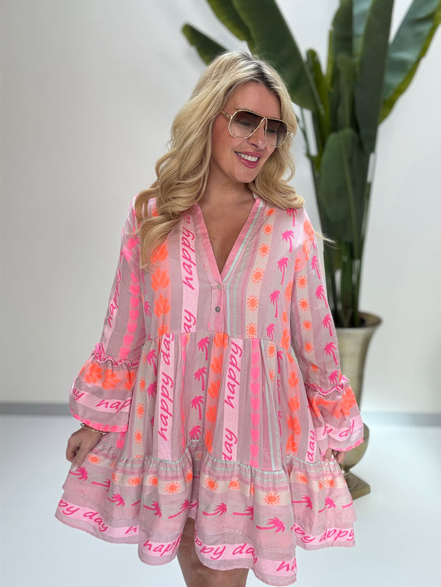HOLIDAY LOVE Musselin Kleid rosa LEO POWER hotpink/altrosa langarm