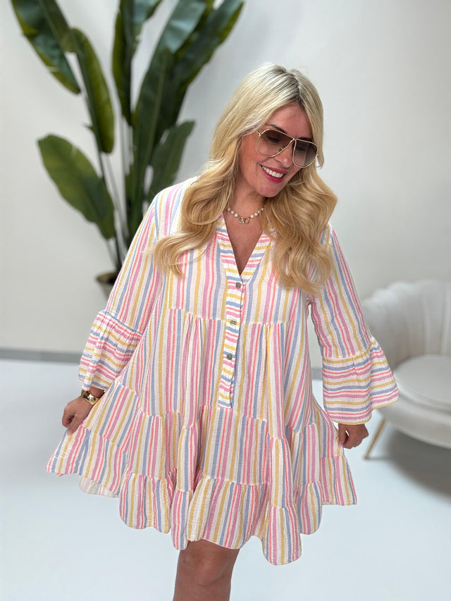 Tunika Musselin Kleid weiß COLORFUL STRIPES blau/pink/gelb/peach