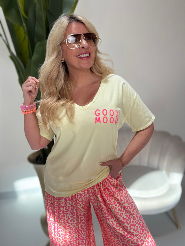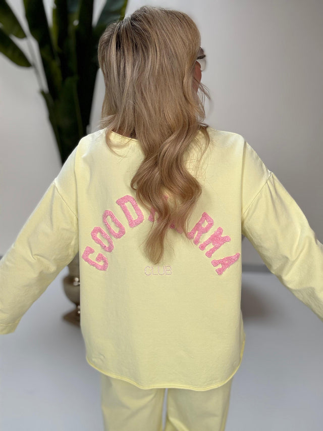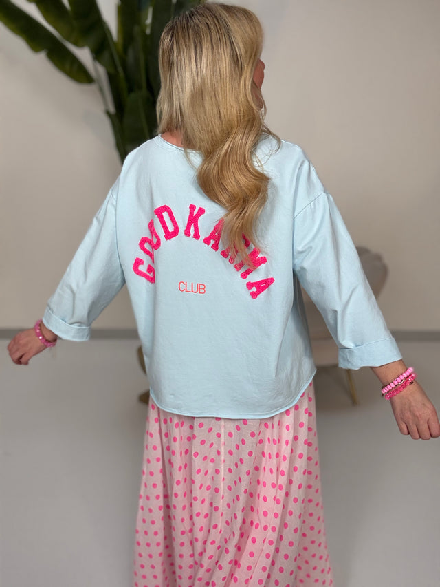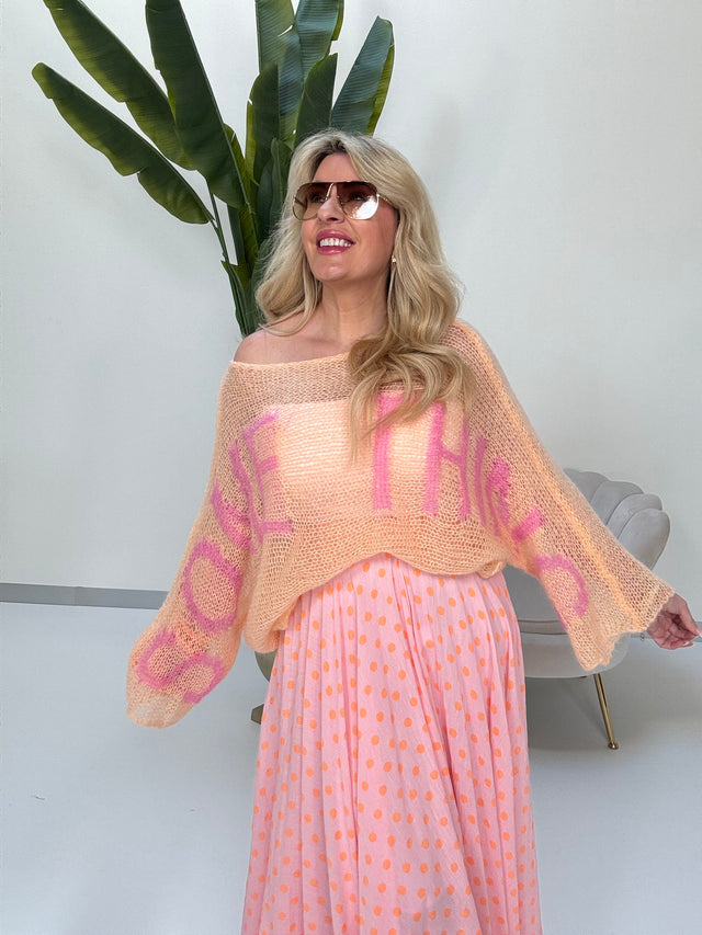 Kurz Arm Sweater Peach Neon SUNDAY CLUB mit Neon Stickerei