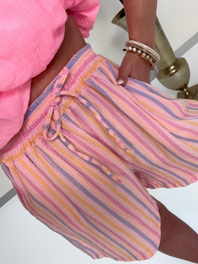 Musselin Shorts rosa COLORFUL STRIPES flieder/pink/gelb