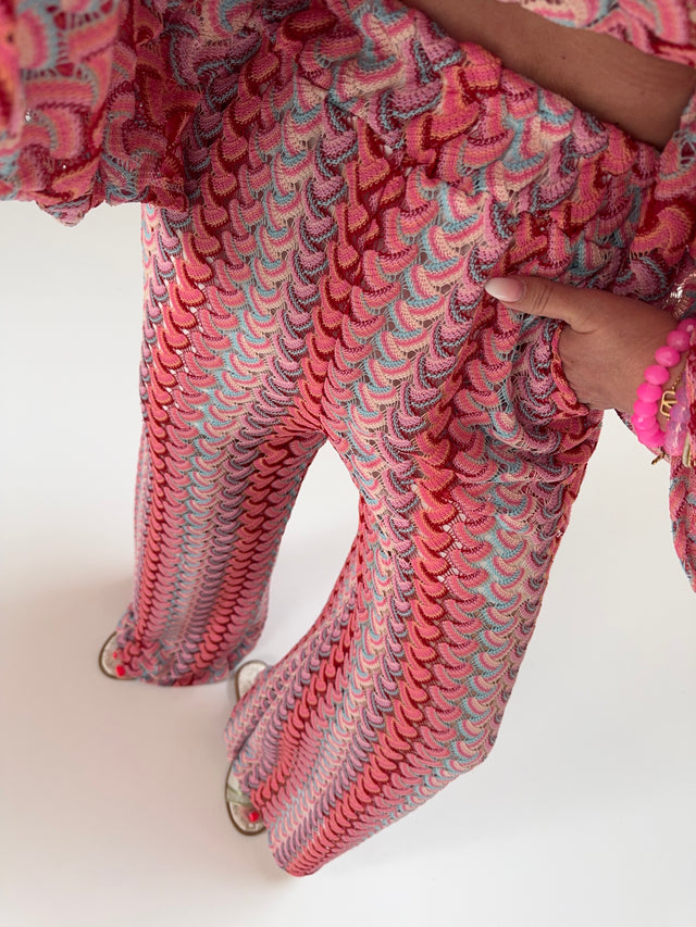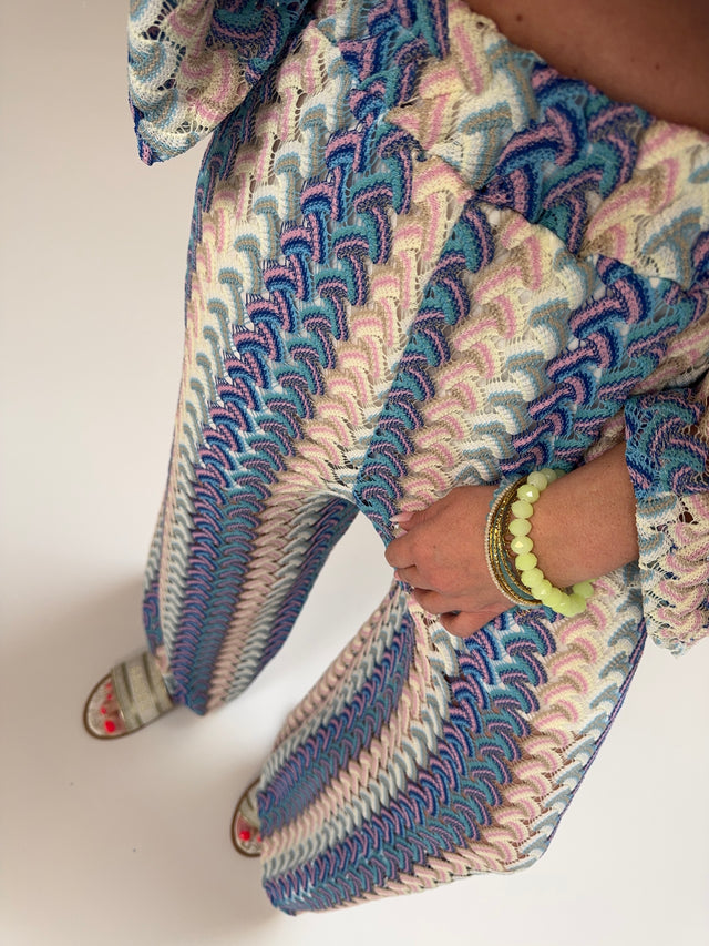 Cardigan BIG BLOCK STRIPES buttermilk lemon/rosa