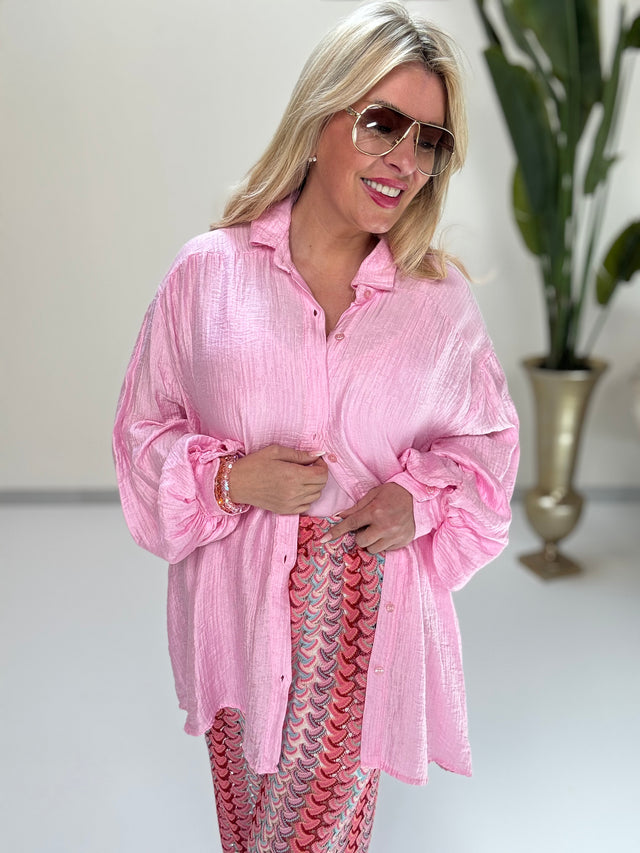 Musselin Kleid rosa LEO POWER hotpink/altrosa langarm
