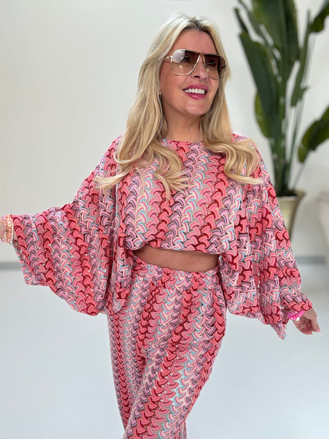 Statement Shirt pink gestreift SOLEIL mit Rückenprint