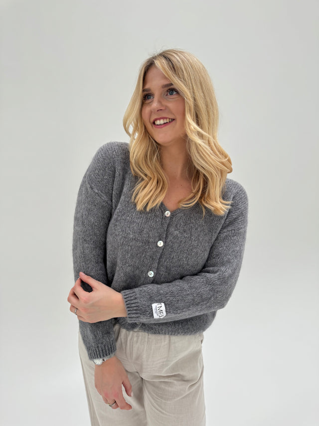Kuschelweiche Basic Strickjacke mit Patch am Ärmel grau