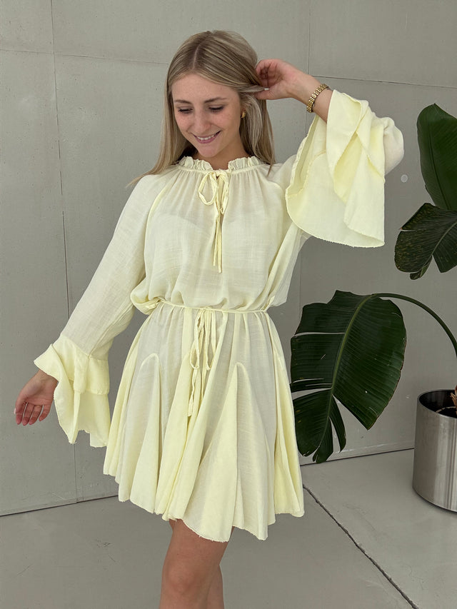 Musselin Bluse kurzarm BUTTERMILK LEMON zum knoten