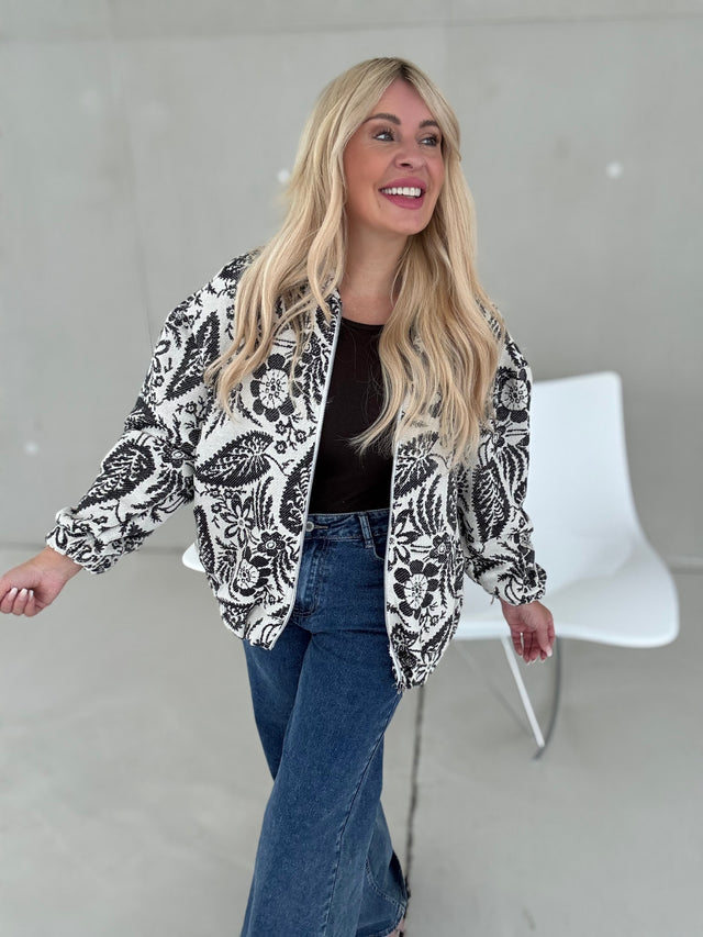 Bomberjacke ROMANTIC FLOWER GARDEN dark brown