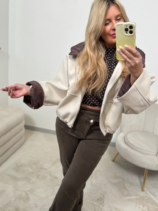 Stretchy Cashmere Langarmshirt taupe mit Spitze LITTLE HEARTS