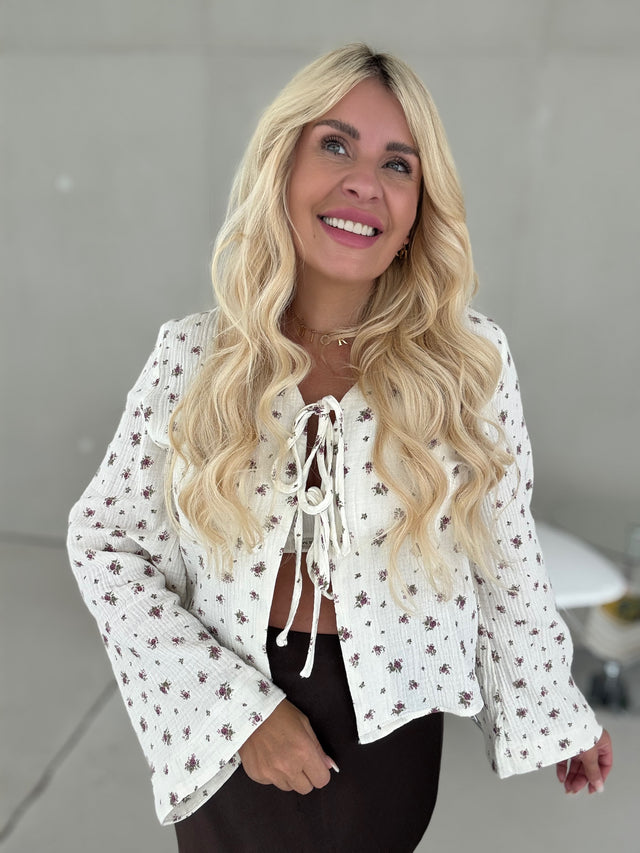 Musselin Bluse BALLERINA ROSA mit Schleifchen Cropped