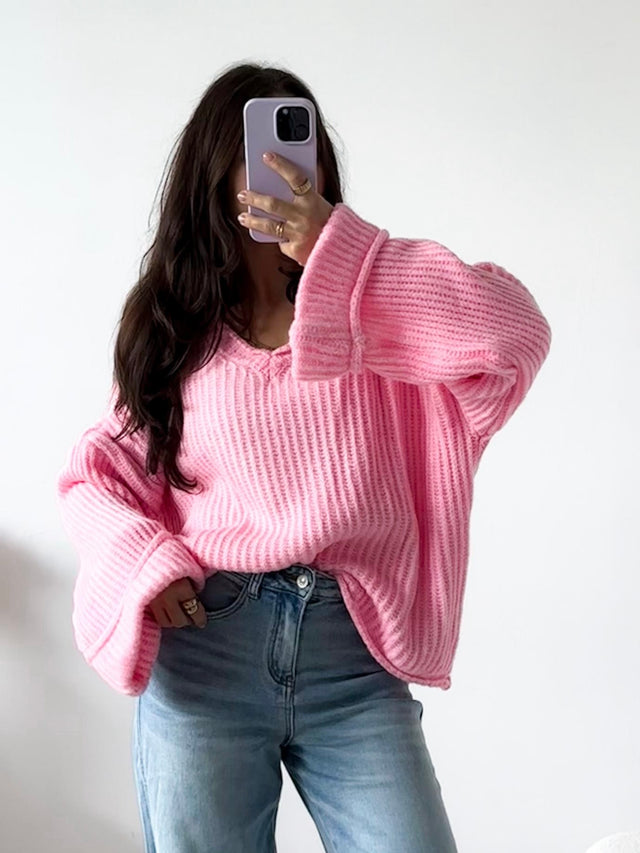 Kuschelweicher Strickpullover LITTLE STRIPES TaupexRosa