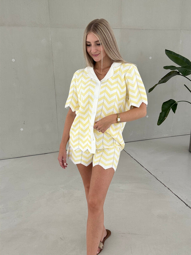 Musselin Bluse kurzarm BUTTERMILK LEMON zum knoten