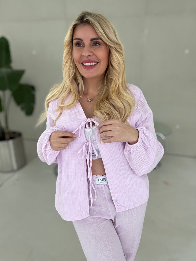 Längere Musselin Bluse CANDY ROSE mit Schleifchen