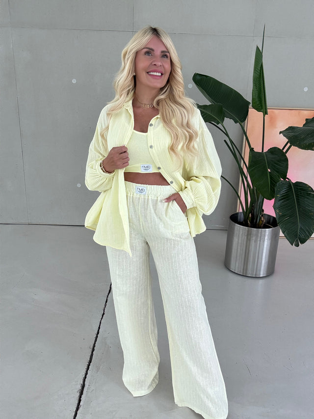 Signature Leinenhose BUTTERMILK LEMON zarte Streifen