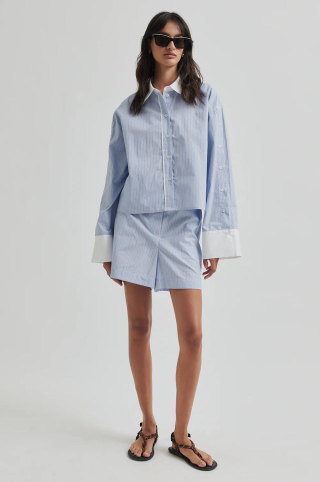 Stylische Musselin Short rosa ZARTE STREIFEN hot orange
