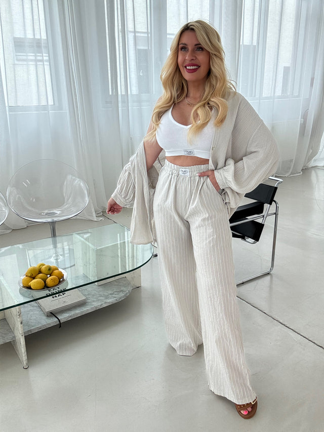Signature Musselin Bluse BEIGE mit Schleifchen Cropped