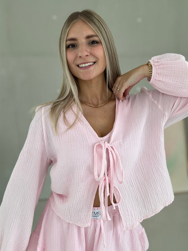 Musselin Bluse BALLERINA ROSA mit Schleifchen Cropped