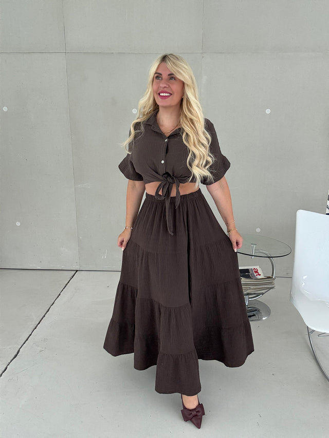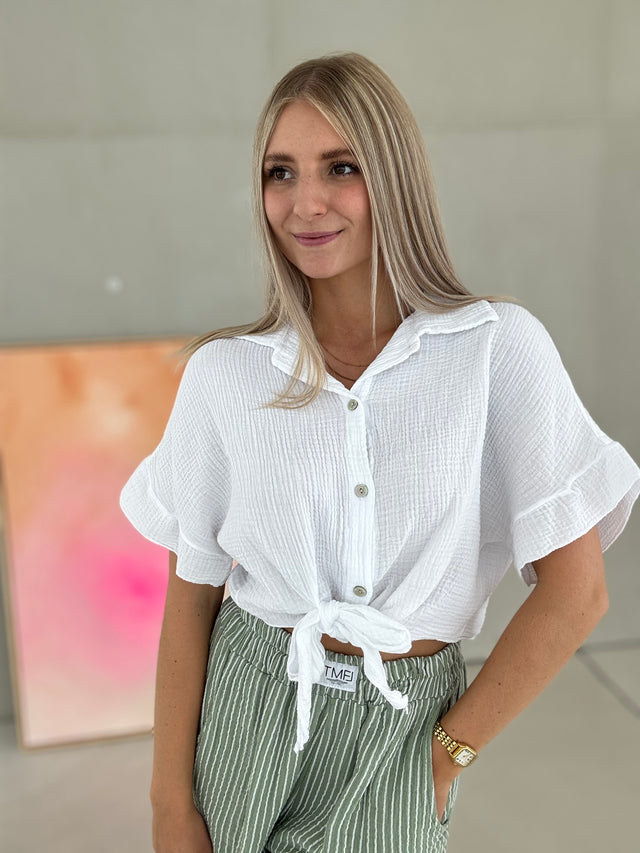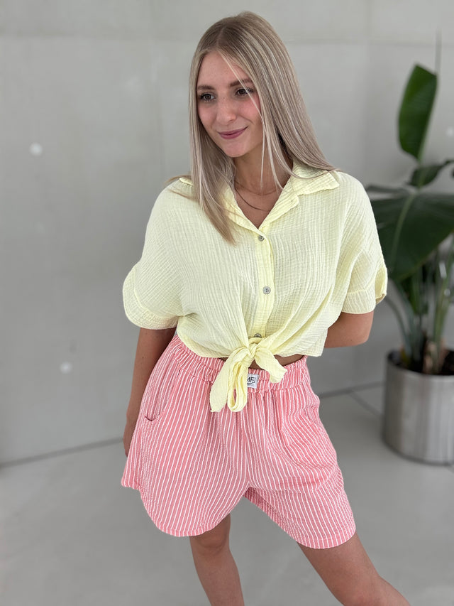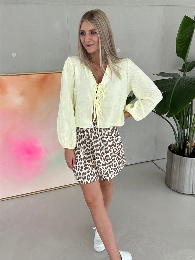 Musselin Bluse kurzarm BUTTERMILK LEMON zum knoten