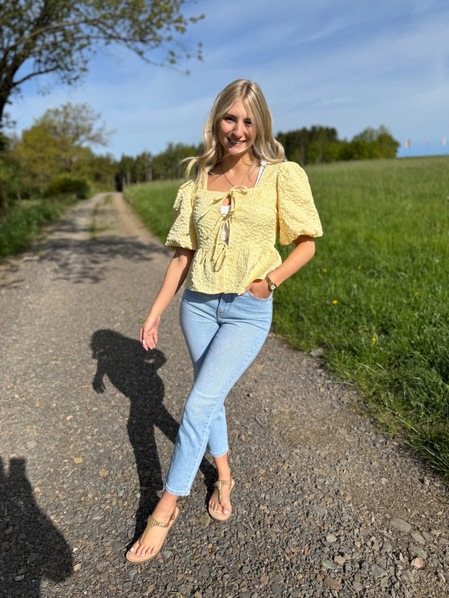 Musselin Bluse BUTTERMILK gelb mit Schleifchen Cropped
