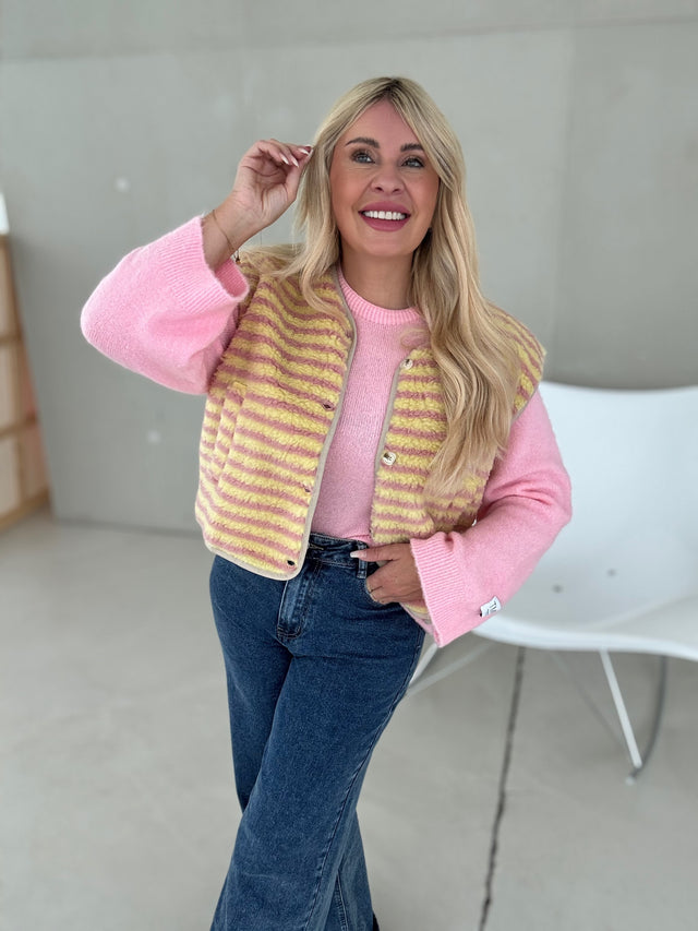 Teddyweste STRIPES Candy Pink Buttermilk Lemon