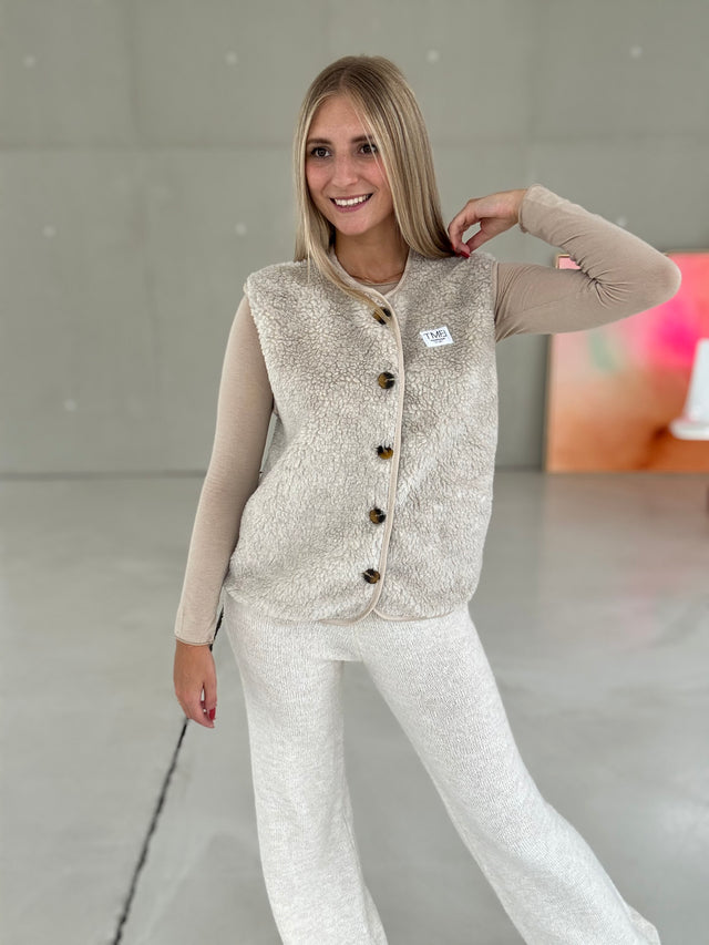 Teddyweste STRIPES Buttermilk Lemon rosa