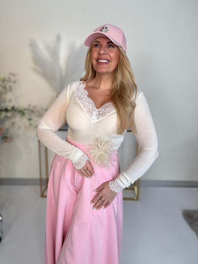 Stretchy Cashmere Langarmshirt taupe mit Spitze LITTLE HEARTS