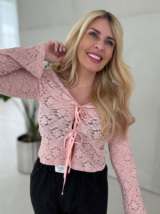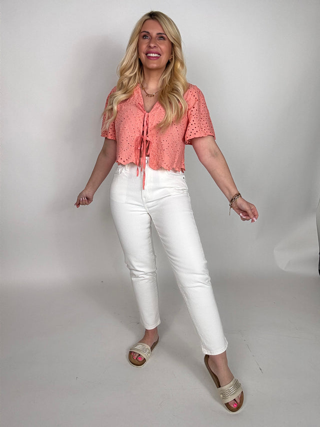 Transparente Bluse mit Lochstickerei BUTTERMILK LEMON langarm