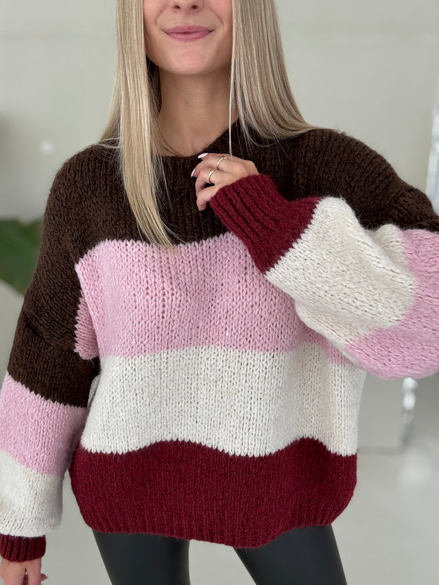 Signature Pullover MY LOVELY STRIPES burgundy/rose/creme/braun