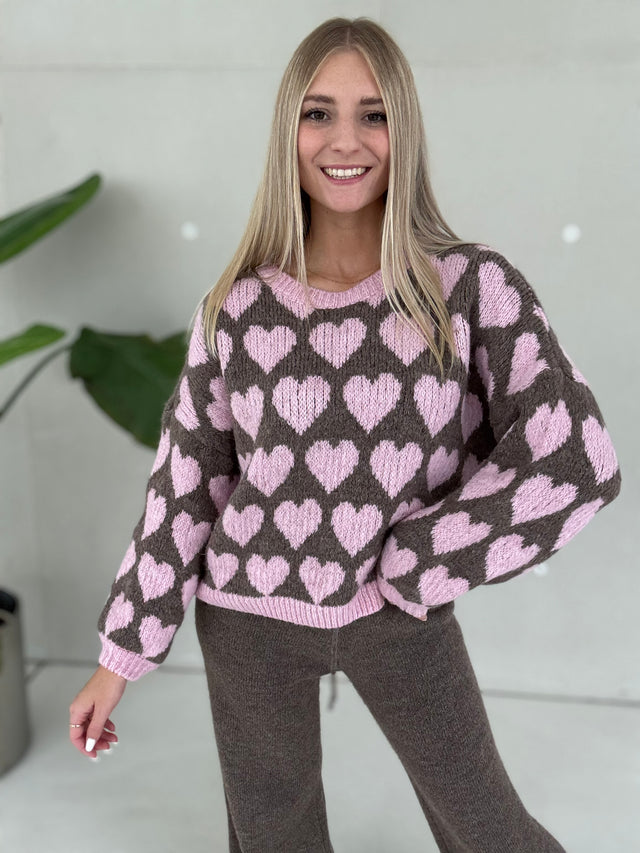 Kuschelweicher Strickpullover LITTLE STRIPES ChocolatexPink