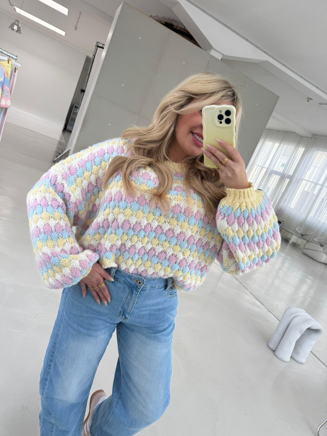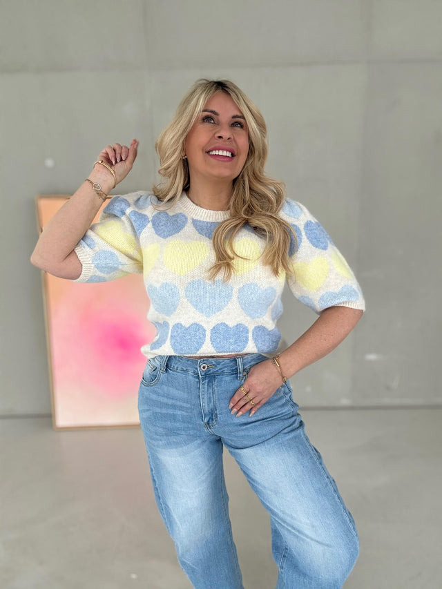 Halfzip Pullover mit Rückenprint SMILE mit Glitzersteinen