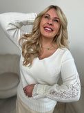 - leicht geschlitzte Ärmel mit Cut-Outs (Spitze unterlegt)