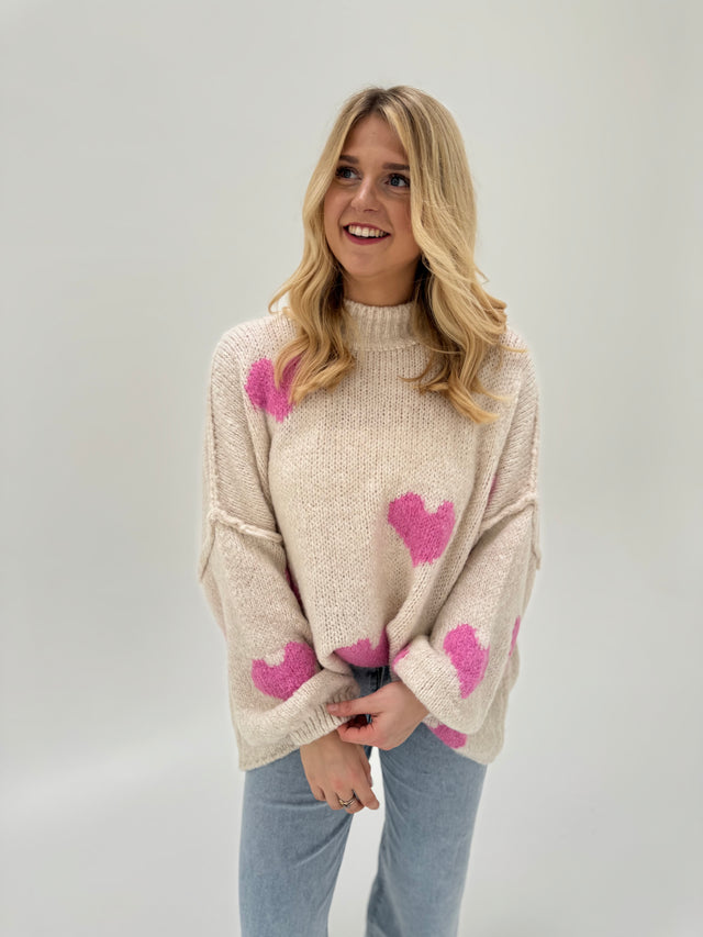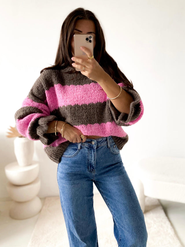 Kuschelweicher Strickpullover LITTLE STRIPES ChocolatexPink