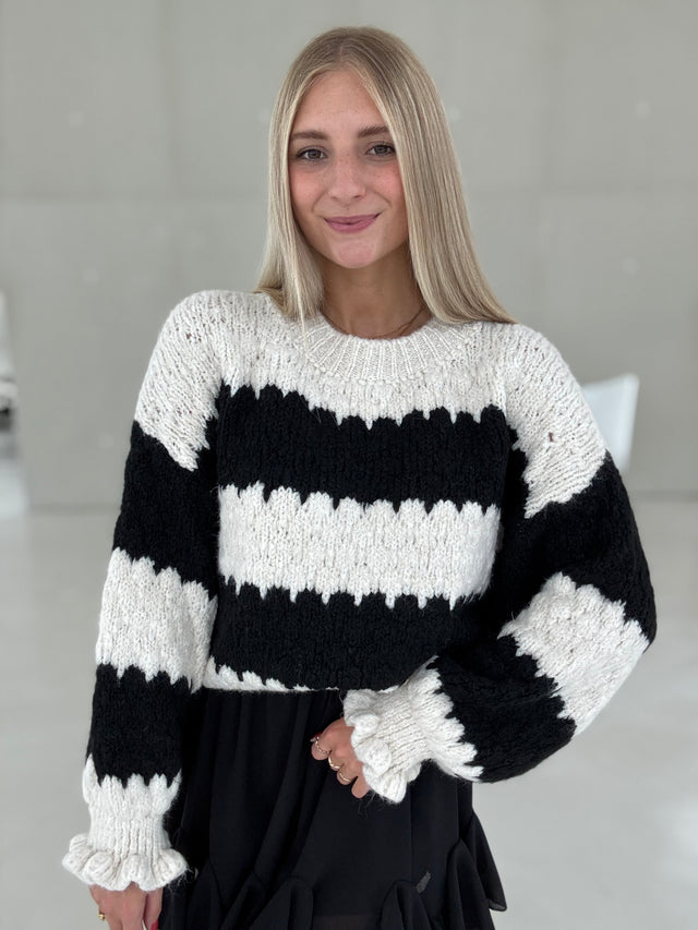 Kuschelweicher Strickpullover LITTLE STRIPES ChocolatexBlue