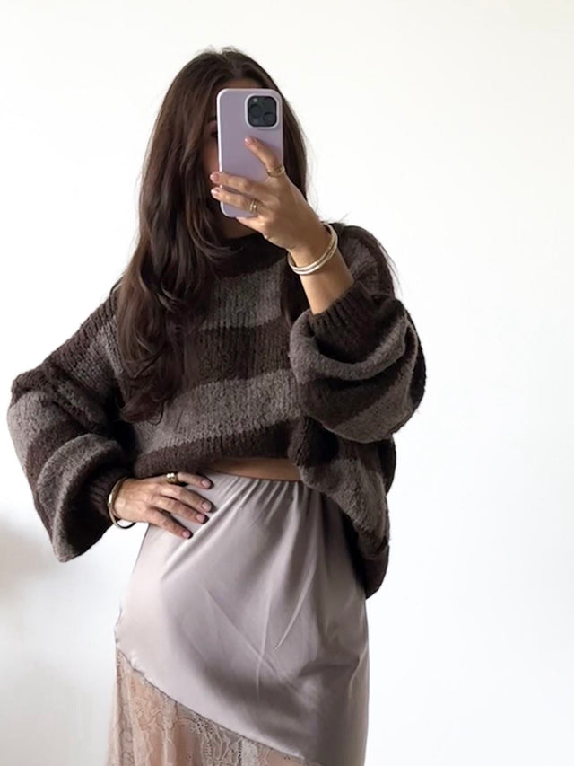 Strickkleid STRIPES Chokolate Creme super Cozy