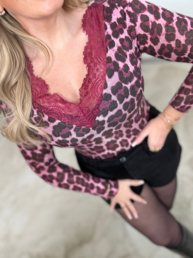 Stretchy Cashmere Langarmshirt Burgundy black Hearts mit Spitze