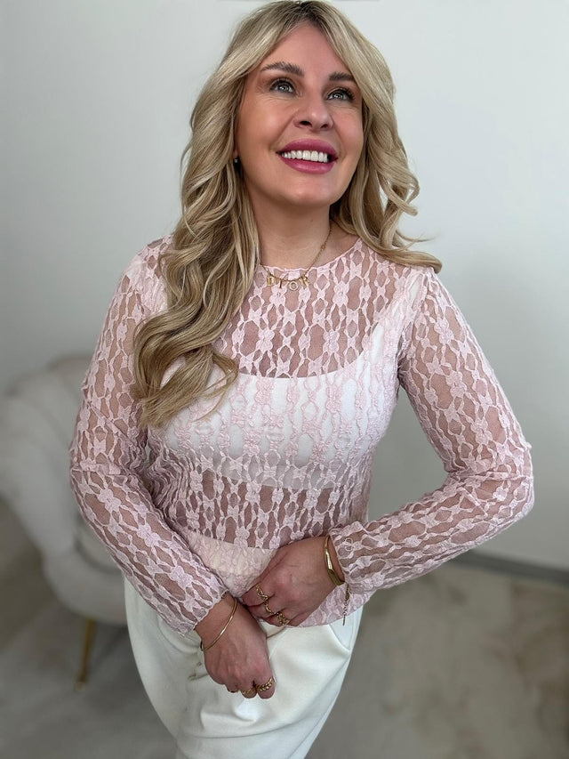 Stretchy Cashmere Langarmshirt mit Spitze pink LUXURY LITTLE LEO