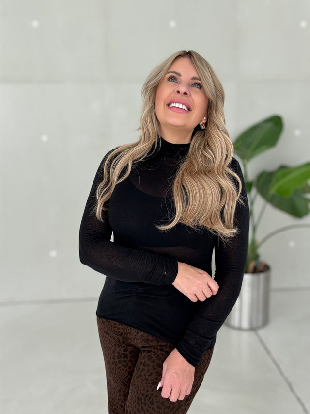 Stretchy Cashmere Langarmshirt TURTLE NECK schwarz luxuriöse Qualität