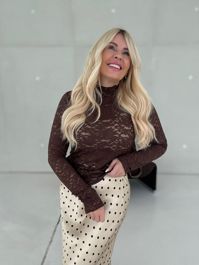 Stretchy Cashmere Langarmshirt taupe mit Spitze LITTLE HEARTS