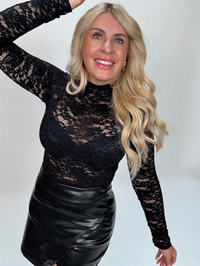 Stretchy Cashmere Langarmshirt black Hearts Burgundy mit Spitze