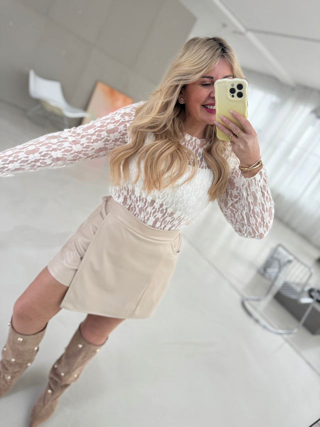 Stretchy Cashmere Langarmshirt creme mit Spitze LITTLE HEARTS
