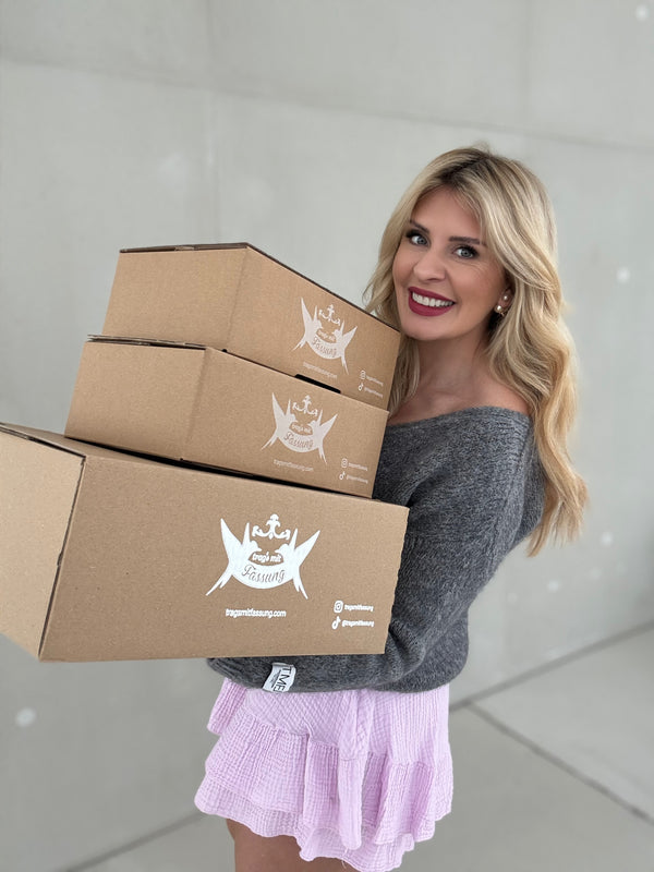 Wir verpacken jedes Paket so, als würden wir es an unsere beste Freundin schicken: hübsch, sicher und mit Liebe. Unsere Verpackungen sind dabei so nachhaltig wie möglich – wir versuchen, Materialien mehrfach zu nutzen und Ressourcen zu schonen, wo es nur geht. 🌿
