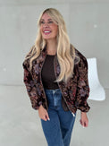 Bomberjacke ROMANTIC FLOWER GARDEN dark brown