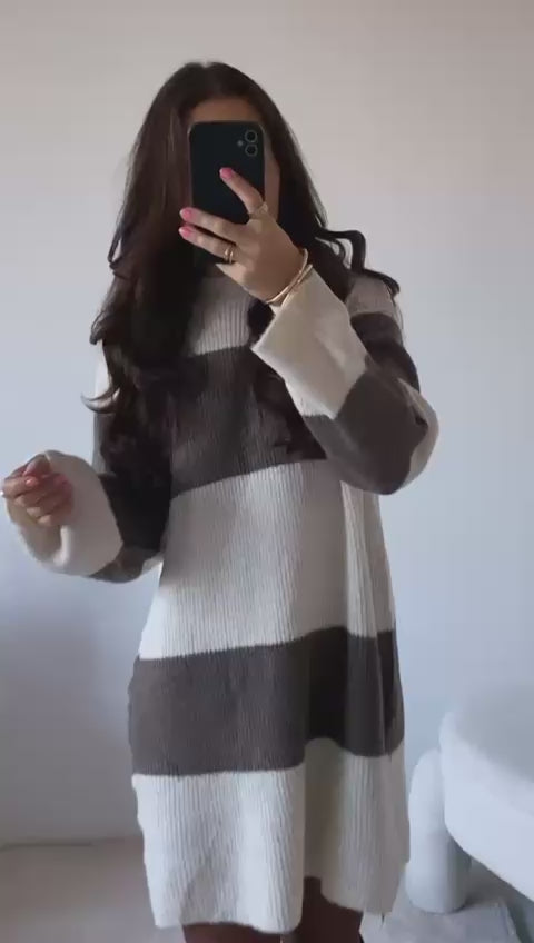 Strickkleid BIG STRIPES creme/taupe