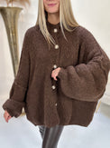 Strickjacke SUPER SOFT dunkelbraun mit Knopfleiste LONG